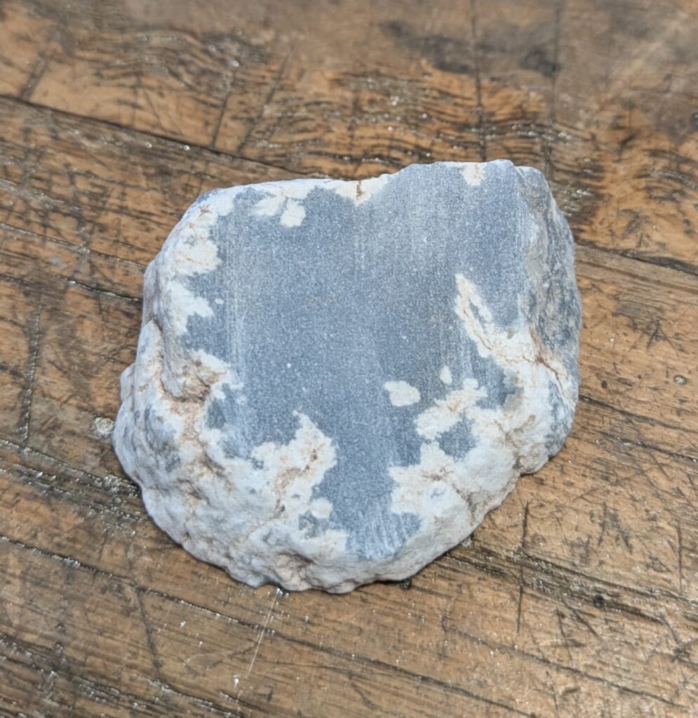 En sten som jag köpte i Grekland för många år sedan. Angelit finns bla i Peru. Jag sågade flera skivor och valde en som jag skulle slipa.